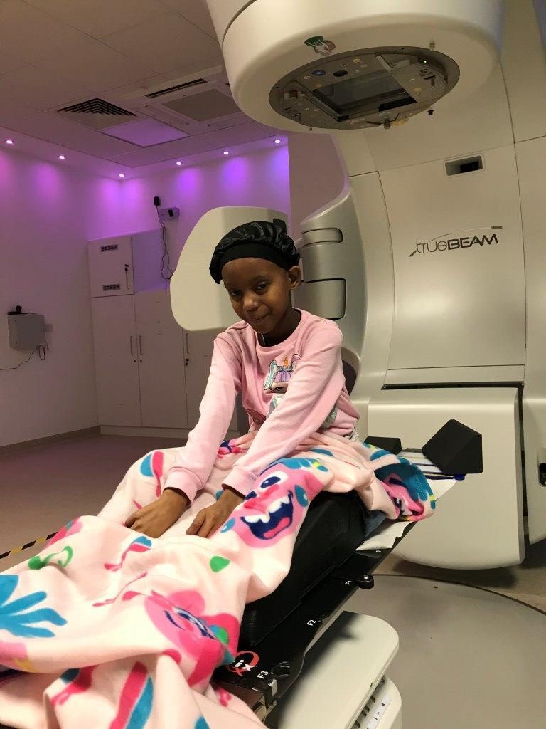 Meleka, pictured here, received her blanket while she was receiving radiotherapy treatment at UCLH. Rhonda Alexander, Radiotherapy Play Specialist at UCLH, said “These blankets have been such a lovely item to be able to give to radiotherapy patients. They often have to remove their clothes for treatment and the rooms can be cold and the treatment couch uncomfortable. The blankets help patients to feel cosy and more at ease which enables them to cope more effectively with their treatment. The blankets have also been great for children who have long hospital stays on the wards – they can choose the blanket they want with the design they like best and helps to make their room or space less clinical. Thanks so much for providing these warm and cosy blankets!”
