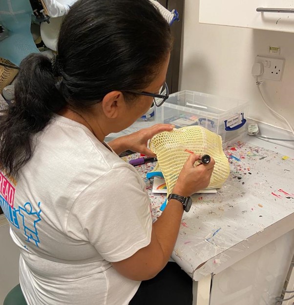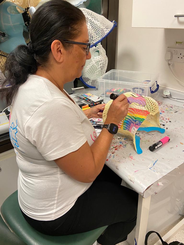 In December, Marina was invited into UCLH to paint her first trial m ask and we are so proud to be working in partnership with the hospital to be able to provide masks for all child and adolescent patients.