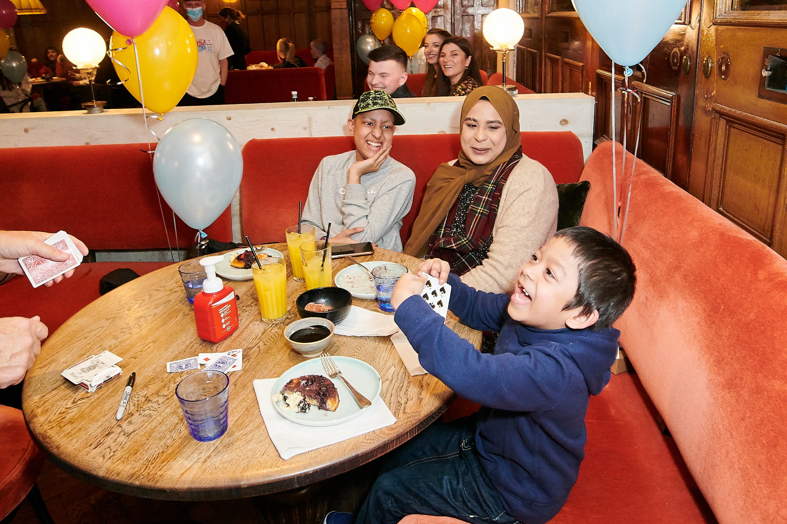 Everyone enjoyed a very special afternoon tea at The Riding House Cafe, Fitzrovia with an entirely sweet menu of favourite desserts including red velvet cake, ice-cream sundaes, malted deep dish pancakes with a host of delicious toppings and hot cinnamon doughnuts with chocolate dip Magic and art activities were provided by our entertainers, Paul, Ian and Judge and fun tattoos by our Head of Art, Marina.